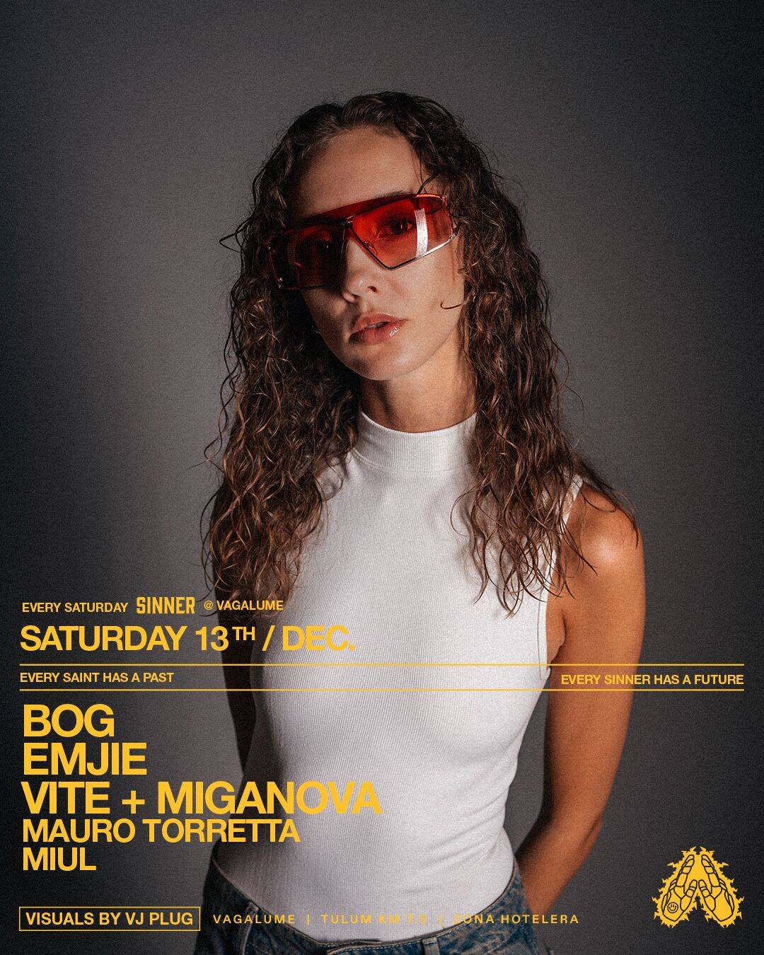 BOG, EMJIE, VITE + MIGANOVA, MAURO TORRETA, y MIUL traen sus selecciones a Sinner, la fiesta boutique de Tulum con una energía innegable.