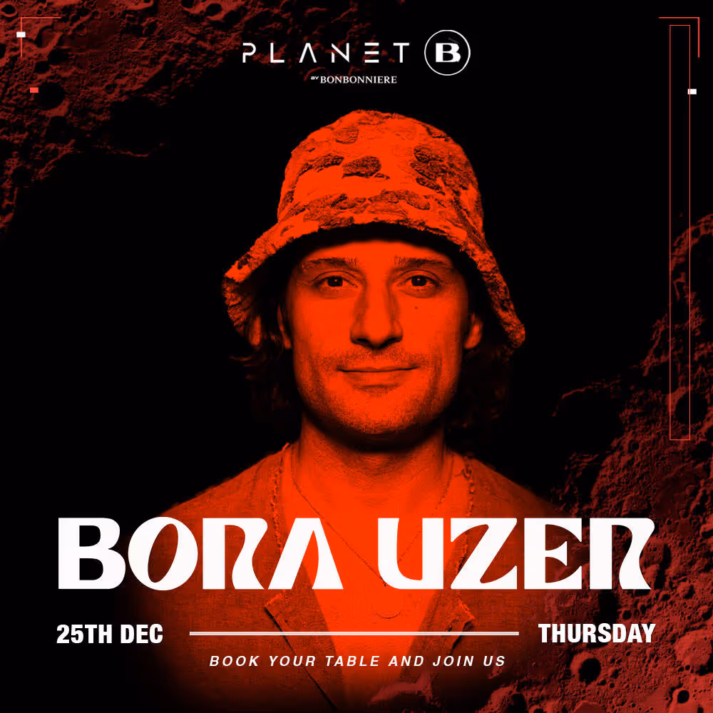 La actuación de Bora Uzer está prevista para el jueves 25 de diciembre, a partir de las 22.00 horas y hasta tarde. Los boletos de admisión general tienen un precio de $1,100 MXN. Bonbonniere mantiene un estricto código de vestimenta elegante-formal para mantener su ambiente sofisticado. Se denegará la entrada a las personas que no cumplan el código de vestimenta; se prohíbe explícitamente el uso de atuendos playeros como trajes de baño, gorras, sandalias y pantalones cortos deportivos. Dado el estatus de Bonbonniere como lugar central de afterparty y su público premium, se recomienda encarecidamente reservar entradas con antelación.