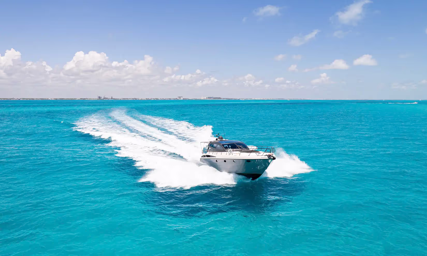 Crea una velada romántica para recordar a bordo del Cranchi Mediterranee 50. Con su elegante diseño y ambiente íntimo, este yate es el lugar perfecto para una comida de cinco platos preparada por nuestro chef a bordo. Mientras el sol se pone sobre el Caribe, disfruta de una noche de lujo y romance con tu pareja en las serenas aguas de Tulum.