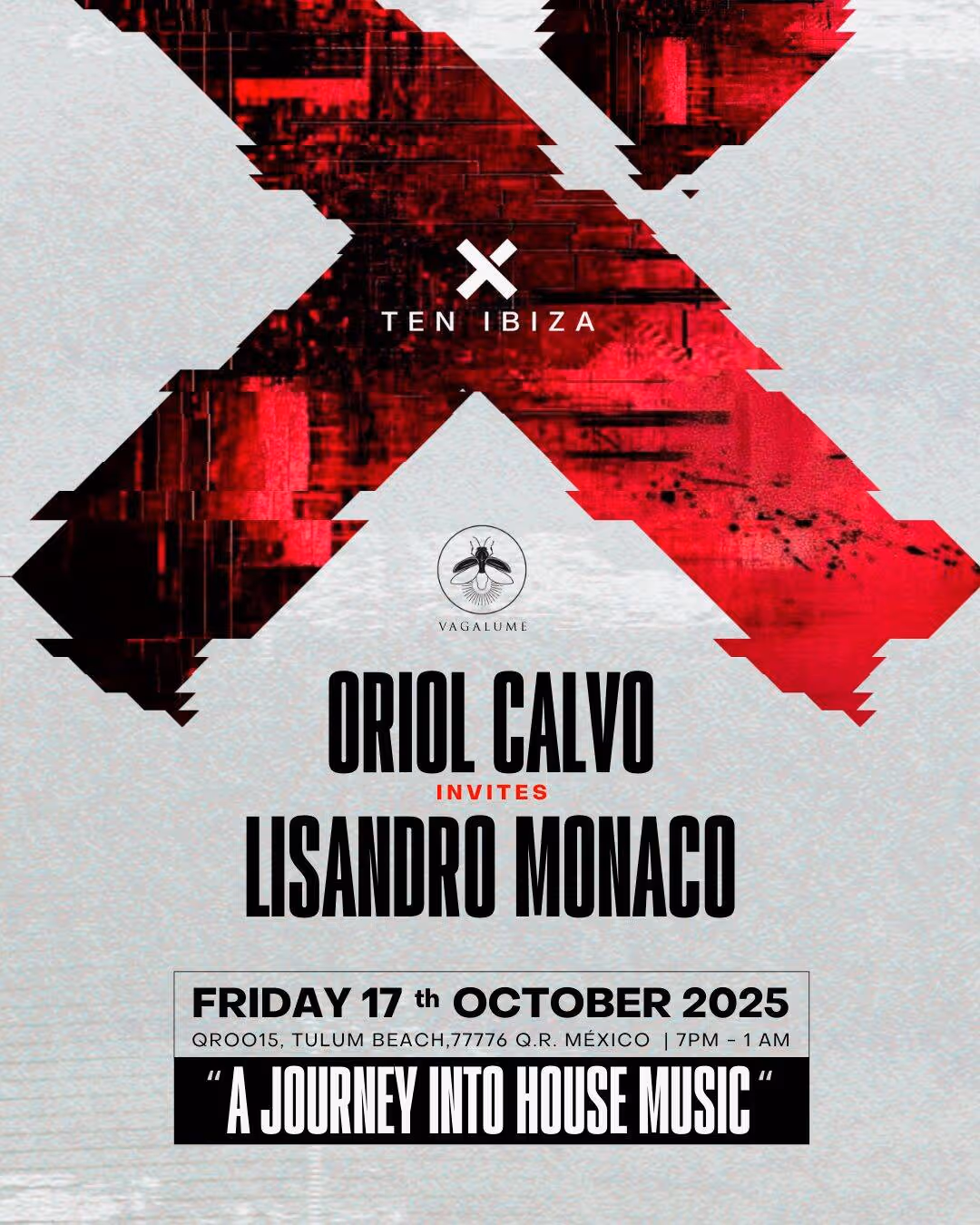 This edition of Ten Ibiza at Vagalume Tulum features a meticulously curated lineup, showcasing the deep and expansive realms of house music. Veteran Ibiza resident ORIOL CALVO, known for his infectious energy and discerning selections, takes the helm, inviting LISANDRO MONACO to join him. Together, these artists promise a sonic expedition through the genre's diverse soundscapes, emphasizing rhythmic complexity and compelling melodies, aligning with the series' commitment to delivering authentic Mediterranean club culture.