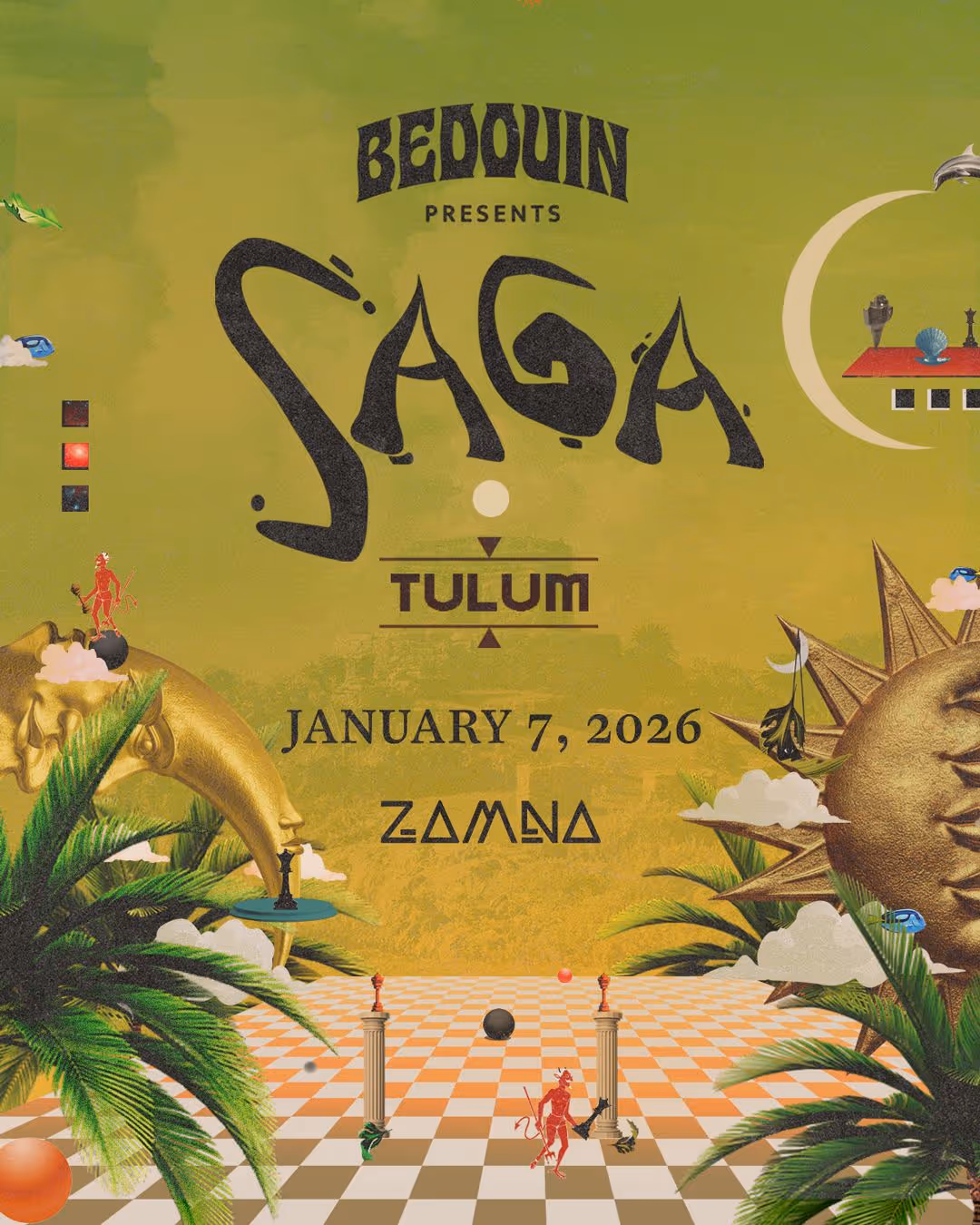Bedouin’s SAGA returns to Zamna on Jan 7, 2026—melodic, ritual-styled house/techno from the duo behind Temple of Dreams and Human By Default