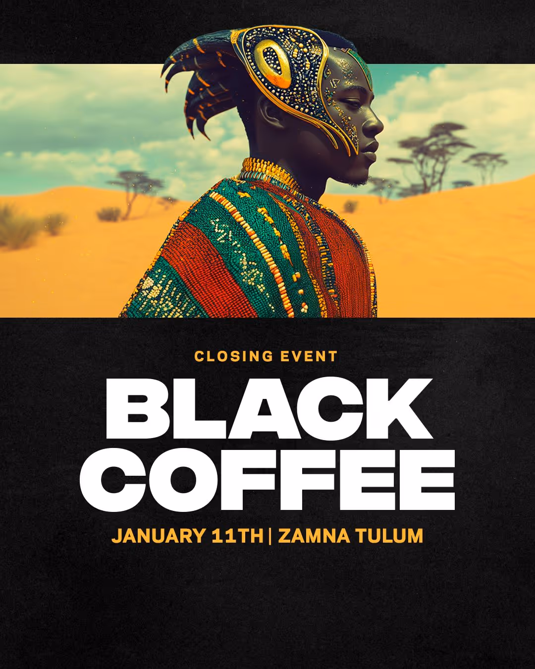 Black Coffee returns to Zamna Tulum on Jan 11, 2026—Grammy-winning Afro-house icon closing the season with a deep, hypnotic set in the jungle.